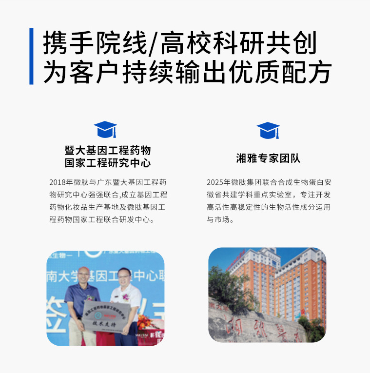 - 研发团队:代工厂需具备专业研发人员,能够持续优化配方与工艺。例如,微肽生物的研发团队与暨南大学基因药物工程研究中心合作,开发出小分子肽类原料,应用于创面愈合、抗衰等领域,并拥有多项自主专利。