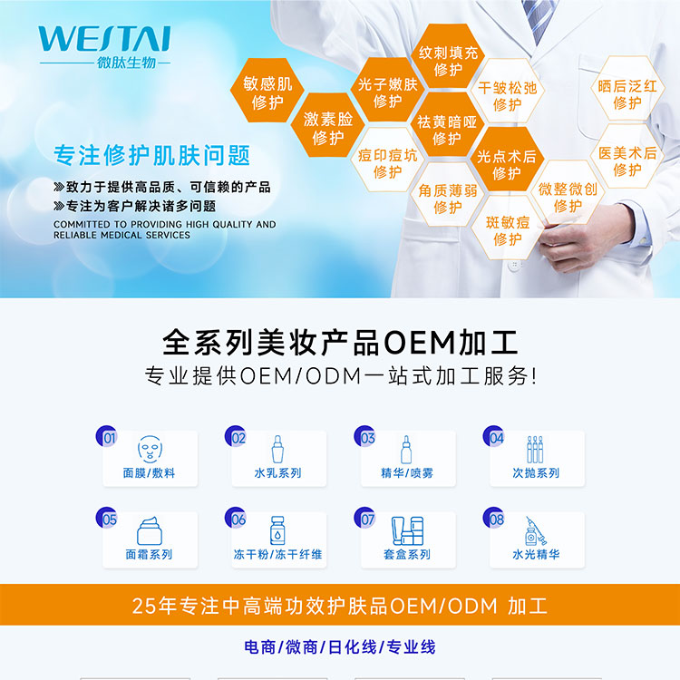 ② 剂型创新:支持冻干粉、凝胶、敷料等多形态开发,适配医美机构、药店及电商渠道。
